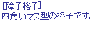 ◆ 面格子 スタンダードタイプ … 一般的に多く設置されている面格子です。